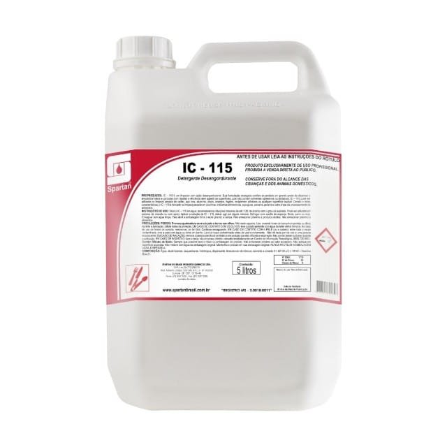 O IC-115 da Spartan é um detergente desengordurante especialmente desenvolvido com tecnologia avançada para proporcionar uma limpeza rápida e eficaz. Graças às suas matérias-primas modernas, ele possui um grande poder de dissolver e remover gorduras e óleos mais resistentes, facilitando o dia a dia da limpeza profissional sem danificar ou desgastar as superfícies tratadas. Diferentemente de outros produtos mais agressivos, o IC-115 não utiliza solventes abrasivos, componentes agressivos ou álcalis cáusticos em sua composição.