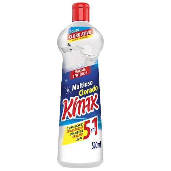 Para utilizar, basta direcionar o jato do Multiuso Kimax sobre a superfície a ser limpa. Deixe agir por alguns instantes e, se necessário, esfregue com a face macia de uma esponja. Após a ação do produto, enxágue bem. Ideal para manter a rotina de limpeza diária, o Multiuso Kimax é seu aliado na batalha contra sujeira e germes, trazendo praticidade e eficiência para o seu dia a dia. Experimente e transforme a limpeza da sua casa com o Multiuso Kimax Clorado! O Multiuso Kimax Clorado 500ml – 5 em 1 é um produto à base de cloro ativo, ideal para limpar e higienizar vasos sanitários, box, azulejos e pisos do banheiro. Ele elimina bactérias causadoras de mau odor e remove gorduras de forma eficaz. É indicado para superfícies laváveis resistentes ao cloro. O modo de uso é simples: basta direcionar o jato sobre a superfície, deixar agir por alguns instantes, esfregar com uma esponja macia se necessário e enxaguar. O produto vem em uma embalagem de 500 ml, garantindo praticidade e eficiência na limpeza.